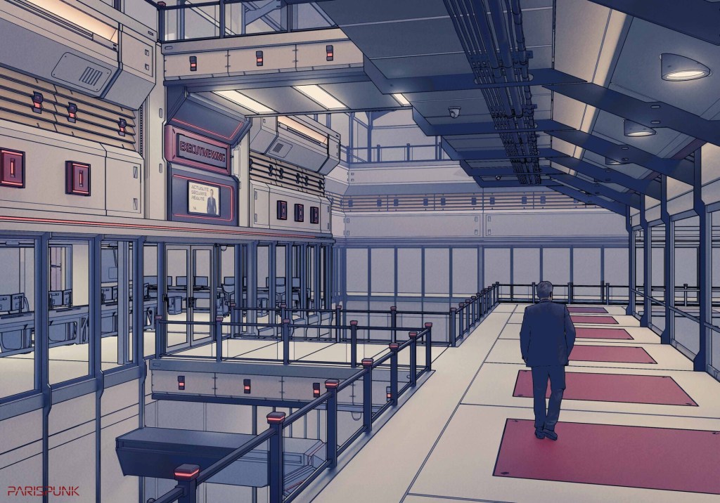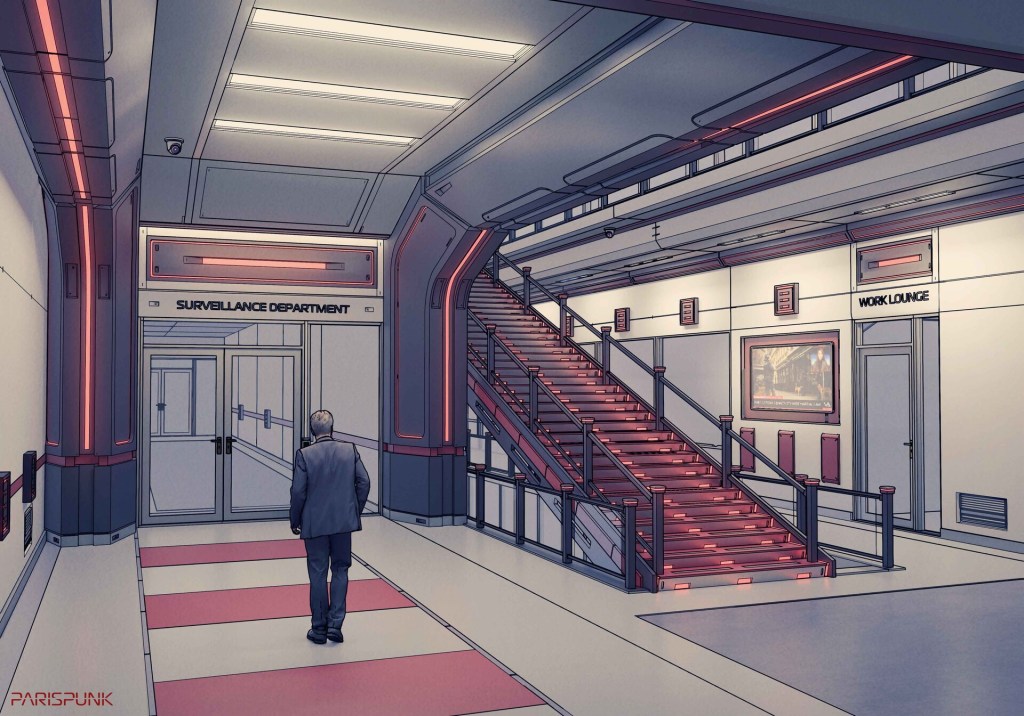 Environmental designs for the Ville News Headquarters. I sought a repetitive, top-heavy, and geometric design language to convey the company’s power.
